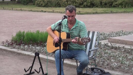 Музыкант играл на скрипке. Концерт на площади Искусств