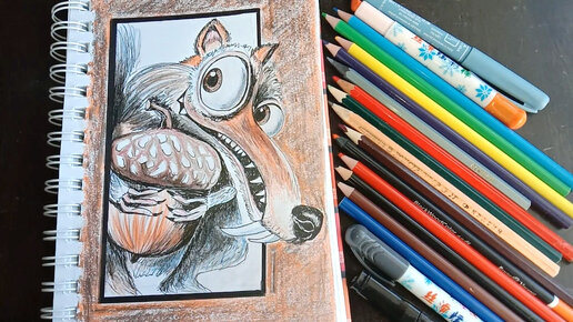 Рисую саблезубую белку из "Ледникового периода" цветными карандашами