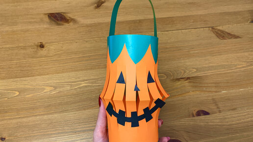 Поделки на хэллоуин. Осенняя поделка тыква. Фонарик из цветной бумаги.