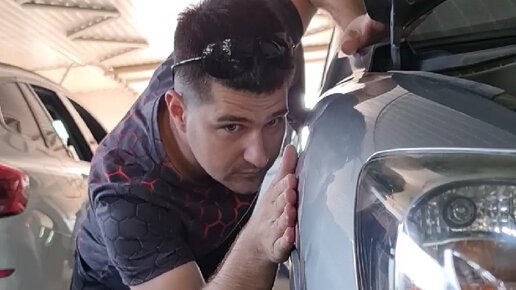 Показываю, как мастер устраняет вмятины на крыле автомобиля без покраски