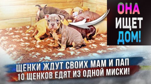 Сразу 10 щенков едят из одной миски одновременно! Из них 3 щенка всё еще ждут своих новых хозяев!