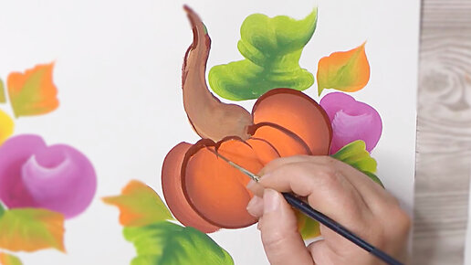 Как нарисовать тыкву в два цвета, художник Ирина Лямшина