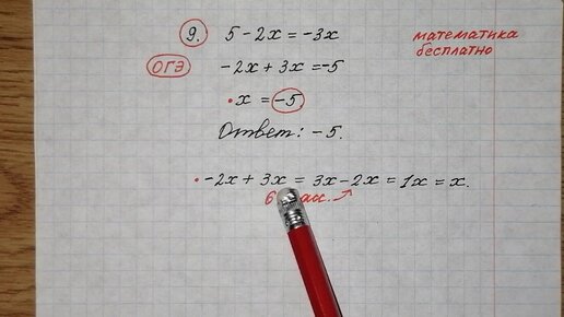 Решите уравнение 5-2х=-3х. ОГЭ по математике. Огэ 2022. Решу огэ. Математика бесплатно.
