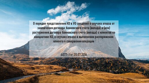 4077-У от 20.07.2016 "О порядке представления КО в УО сведений о случаях отказа ..."