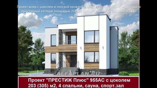 Проект дома с цоколем и плоской крышей «Престиж Плюс» 955АС, 203 (305) м2, 4 спальни