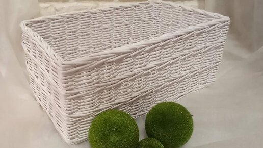МК. Белоснежная прямоугольная коробка из бумажной лозы. #83