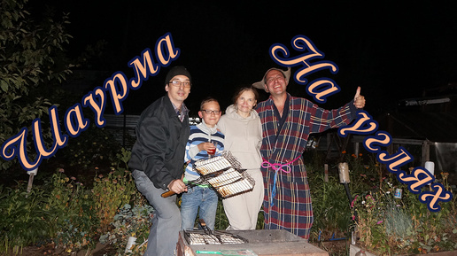 Рецепт приготовления шаурмы на углях с копчёными овощами в огороде в ночи