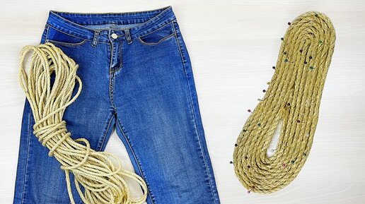 Сделала обувь из шнура и старых джинсов! Подошву сделать очень легко и быстро