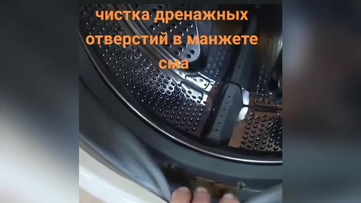 Показываю Чистку дренажных отверстий в манжете стиральной машины автомат