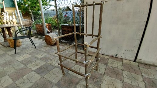 Из пластиковых бутылок и палок сделал оригинальное кресло для сада