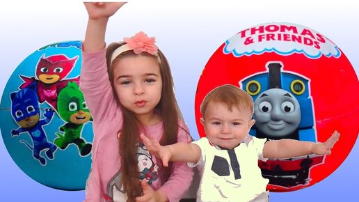 PJ Masks VS Thomas Giant surprise toy egg / Slime challenge