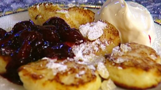Юлия Высоцкая — Картофельные ромбики с манкой под вишневым соусом
