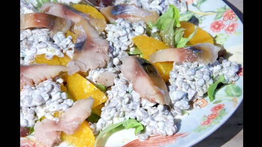 Юлия Высоцкая — Салат из зеленой чечевицы с апельсином и копченой рыбой