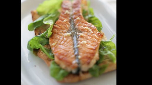 Юлия Высоцкая — Маринованная семга на гриле с хлебом и салатом