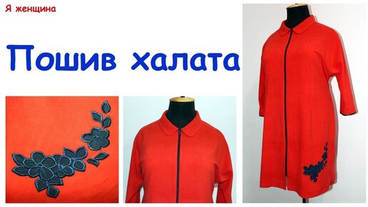 Домашний халат с цельнокроенным рукавом. Пошив пошагово за один час