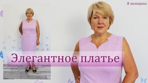 Элегантное офисное платье с фигурной горловиной и рельефами