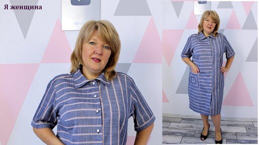 Модное Платье - Рубашка из льна в полоску. Обзор готового изделия