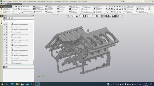 Компас-3D v.20. Сборка ДВС, часть 11.12. Блок двигателя, продолжаем усилять конструкцию.