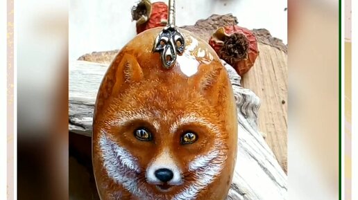 Кулон с росписью на камне « Лисичка . Взгляд предков. »