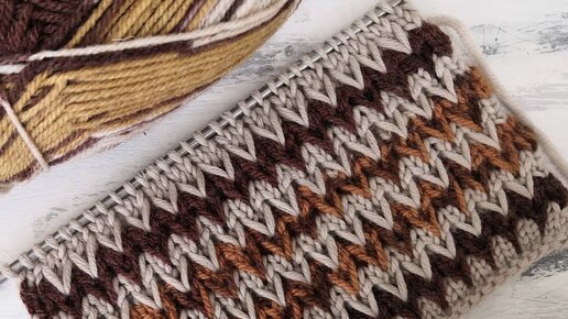 Узор спицами _двухцветные зигзаги_ для вязания свитера, кардигана, шапки