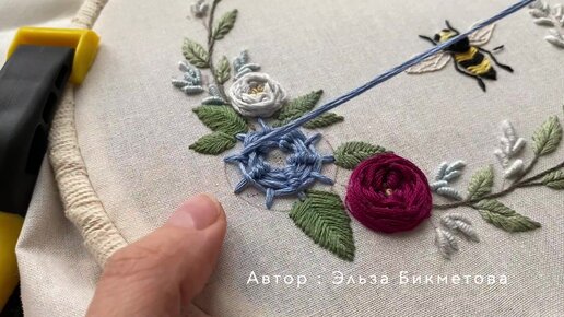 Вышивка цветка в техниках "Рельефная паутинка", "Паутинка", "Французский узелок".