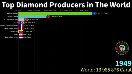 Топ производителей алмазов в мире с 1920 по 2019 год