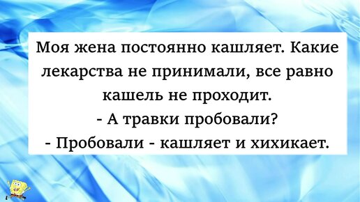 Моя жена постоянно кашляет. Какие лекарства не принимали, все равно кашель не проходит... Анекдот