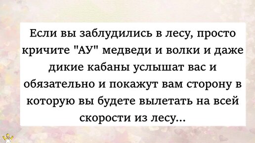 Если вы заблудились в лесу, просто кричу "Ау" медведи и волки и даже дикие кабаны... Анекдот
