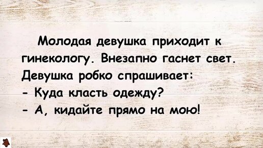 Молодая девушка приходит к гинекологу. Внезапно гаснет свет. Девушка робко... Анекдот