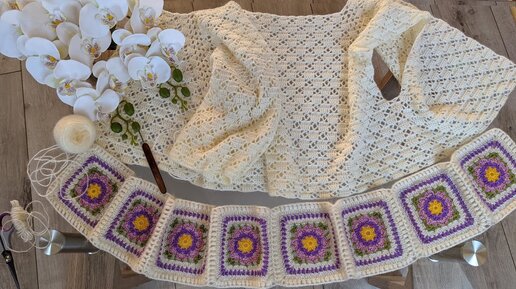 Кардиган крючком "Floreale". Часть 3. Соединение квадратных мотивов.
