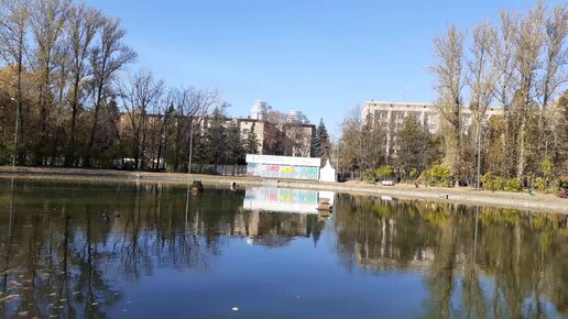 Москва 4066 Мичуринский проспект, улица Дружбы, парк и пруд перед посольством КНР осень день