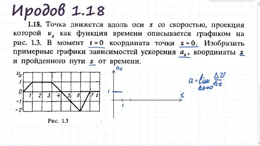 Построить график ускорения, координаты и пути по графику скорости. Иродов 1.18.