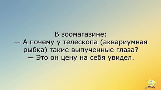 В зоомагазине: "А почему у этой рыбки такие выпученные глаза?" Анекдот