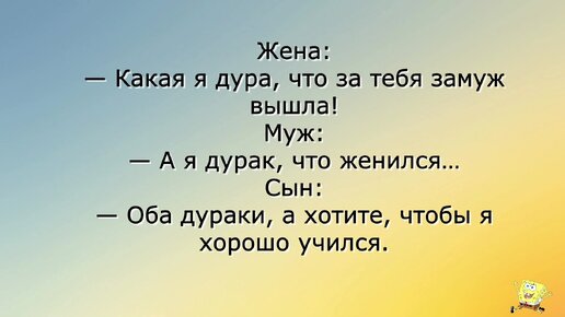 Жена: "Какая я была глупая, что за тебя замуж вышла..." Анекдот