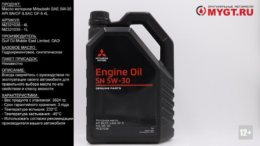 Масло моторное Mitsubishi SAE 5W-30 API SN/CF ILSAC GF-5 4L #ANTON_MYGT