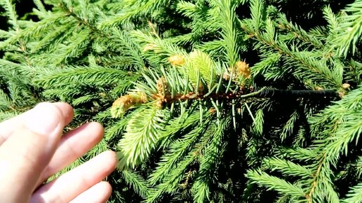 Я удачно привила веточку голубой ели на зелёную. Свежие почки. Эксперимент.
