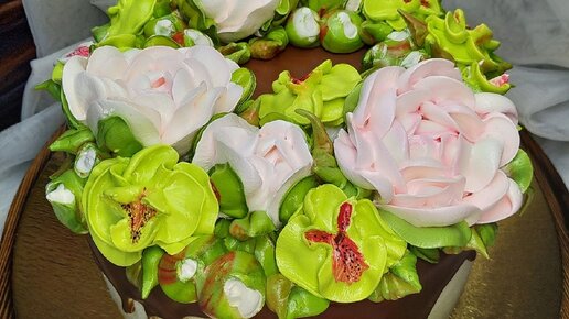 ТОРТ С ПИОНАМИ ИЗ БЕЛКОВОГО КРЕМА. Крем БЗК.