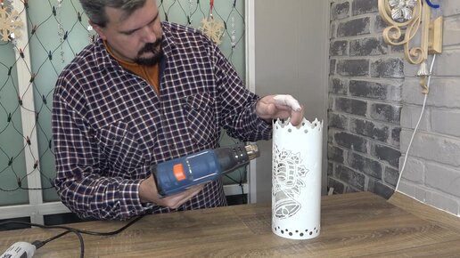 Светильник ночник из трубы ПВХ от воздуховода, с гравировкой и объемными элементами