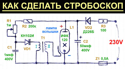 Простой стробоскоп своими руками, как сделать генератор ярких световых вспышек на ИФК-120, схема, описание ее работы, + пример