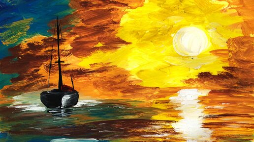 Как нарисовать закат легко. Как нарисовать морской пейзаж. Рисуем закат на море.