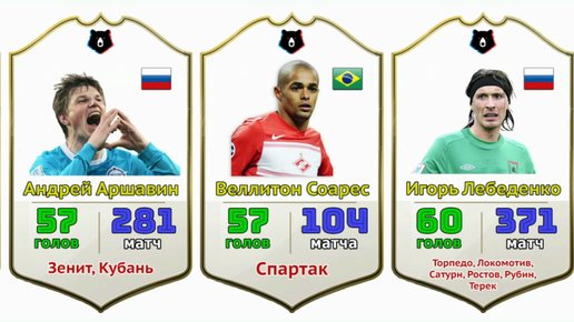 ТОП-29 бомбардиров Чемпионата России по футболу в 21 веке