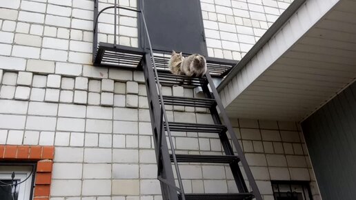 Киска по лестнице залезла на крышу.