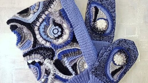 Вязаный комплект из капюшона и варежек "Фриформ"