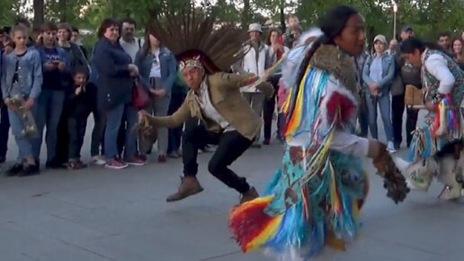 Зритель сбацал шаманский танец под музыку индейцев. Это выглядит удивительно и завораживающе. Играет группа Sumac Kuyllur.