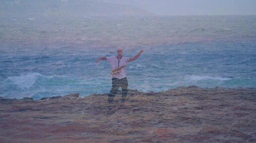 Саксофонист у моря на закате играет транс музыку - Beautiful