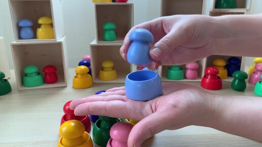 Грибочки на кочках - развивающая деревянная игрушка.