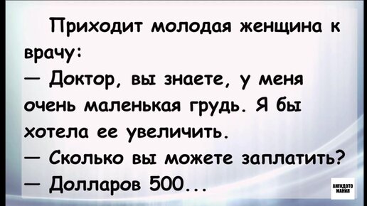 Приходит женщина к врачу: - Доктор, вы знаете, у меня очень маленькая грудь Анекдот