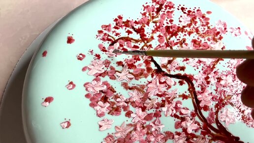 Теперь ты можешь нарисовать на своем торте сакуру. Или на бумаге. Видео пошагово.