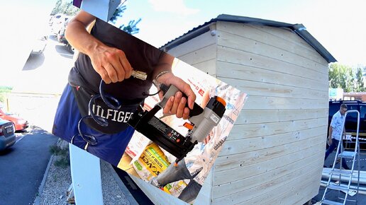 Часть 9. Строим вагончик. Наконец-то разобрались как использовать пневмостеплер и компрессор. Заказчик оценил нашу работу.