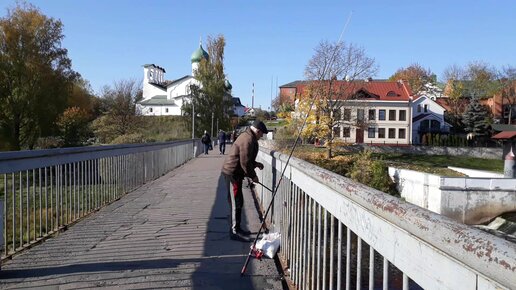 Вид с моста в Финском парке в Пскове на красивые окрестности
